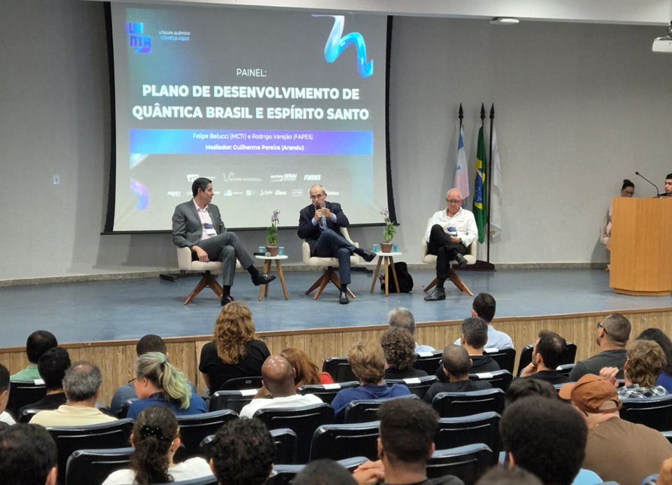 Na manhã de abertura, o diretor-geral da Fapes, Rodrigo Varejão, representou a instituição no painel "Plano de Desenvolvimento de Quântica no Brasil e Espírito Santo", que também recebeu Felipe Bellucci, coordenador-geral de Tecnologias Habilitadoras do Ministério da Ciência, Tecnologia e Inovação (MCTI). O mediador da conversa foi Guilherme Pereira, diretor executivo do Instituto Arandu.