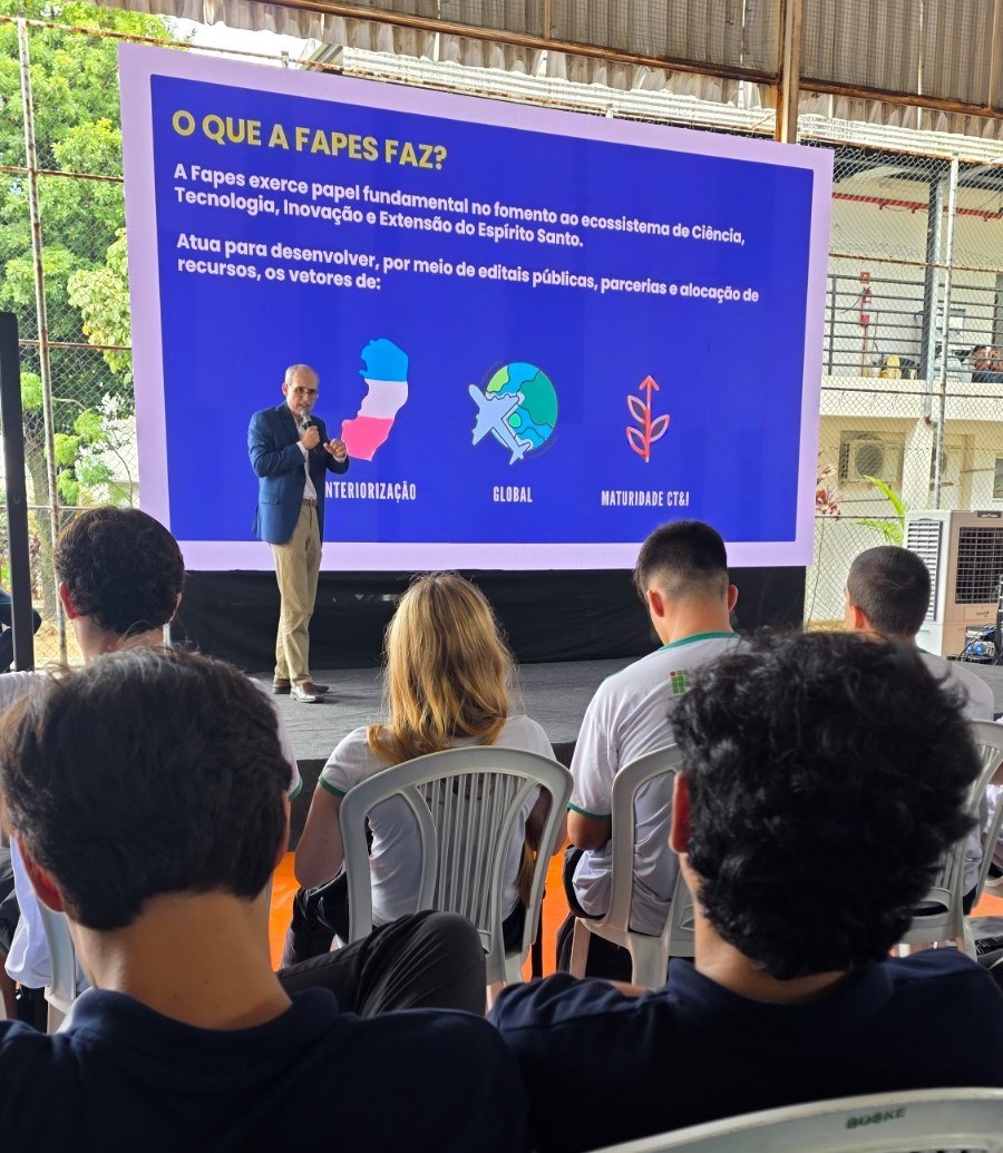 “Apresentei as oportunidades oferecidas pelo Governo do Estado, por meio da Fapes, para estudantes de diferentes níveis de formação — do ensino médio ao técnico e à pós-graduação. São diversas iniciativas que contribuem para o desenvolvimento profissional, tanto na pesquisa científica quanto no empreendedorismo inovador”, afirmou Rodrigo Varejão.