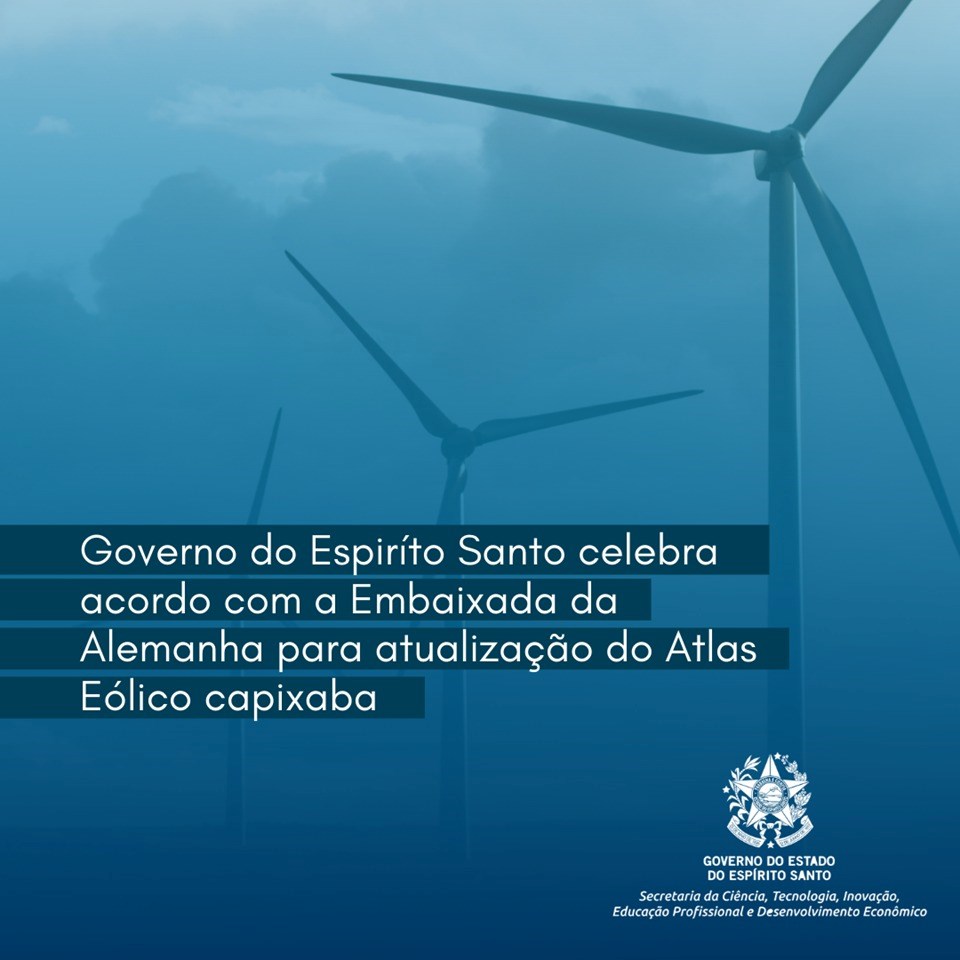 O Governo do Espírito Santo, por meio da Secretaria de Inovação e Desenvolvimento (Sectides), firmou Acordo de Cooperação Técnica com a Embaixada da República Federal da Alemanha para a implementação de ações e de projetos do Programa de Geração de Energias Renováveis (Gerar), entre eles a atualização do Atlas Eólico capixaba.