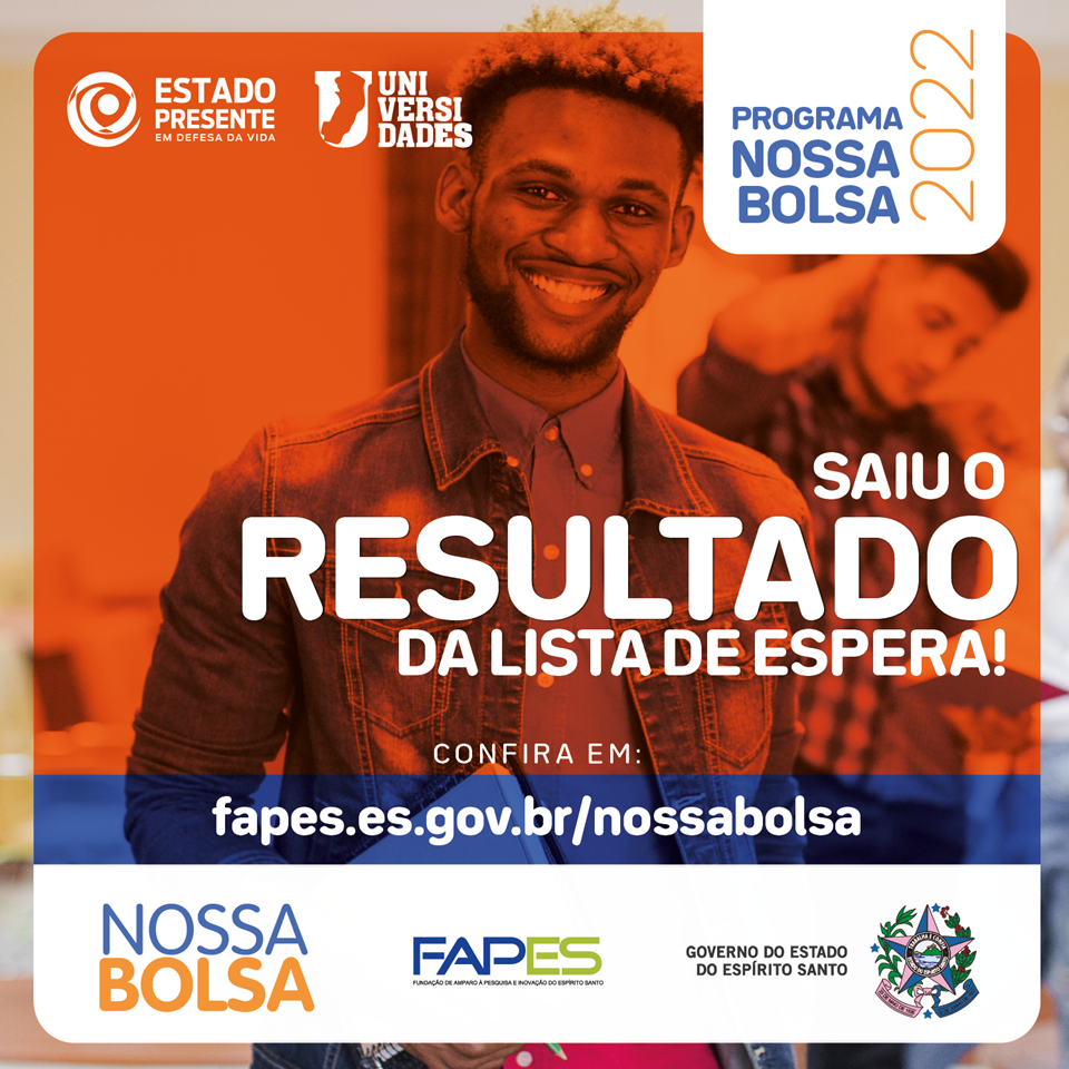Acabou a ansiedade para os interessados em participar da lista de espera do Nossa Bolsa 2022! A Fundação de Amparo à Pesquisa e Inovação do Espírito Santo (Fapes) publicou, nesta terça-feira (15), o resultado da lista de espera em que os inscritos no processo seletivo que não conseguiram a bolsa de estudos puderam manifestar interesse e concorrer as bolsas remanescentes.