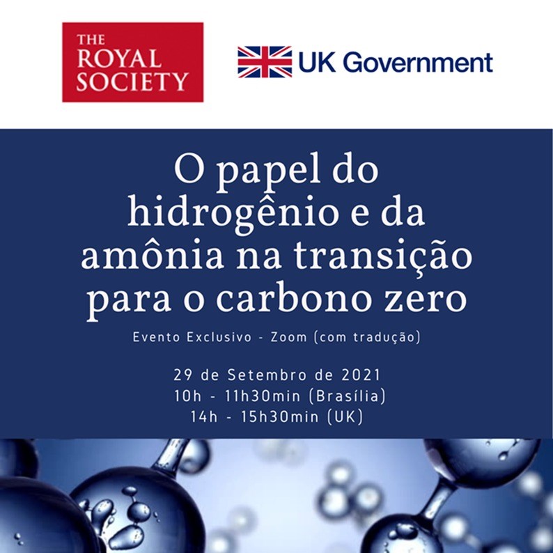A Embaixada do Reino Unido no Brasil em parceria com a Royal Society realizará no dia 29 de setembro de 2021 (quarta-feira), das 10h às 11h30 (horário de Brasília), o webinar “O papel do hidrogênio e da amônia na transição para o carbono zero”.