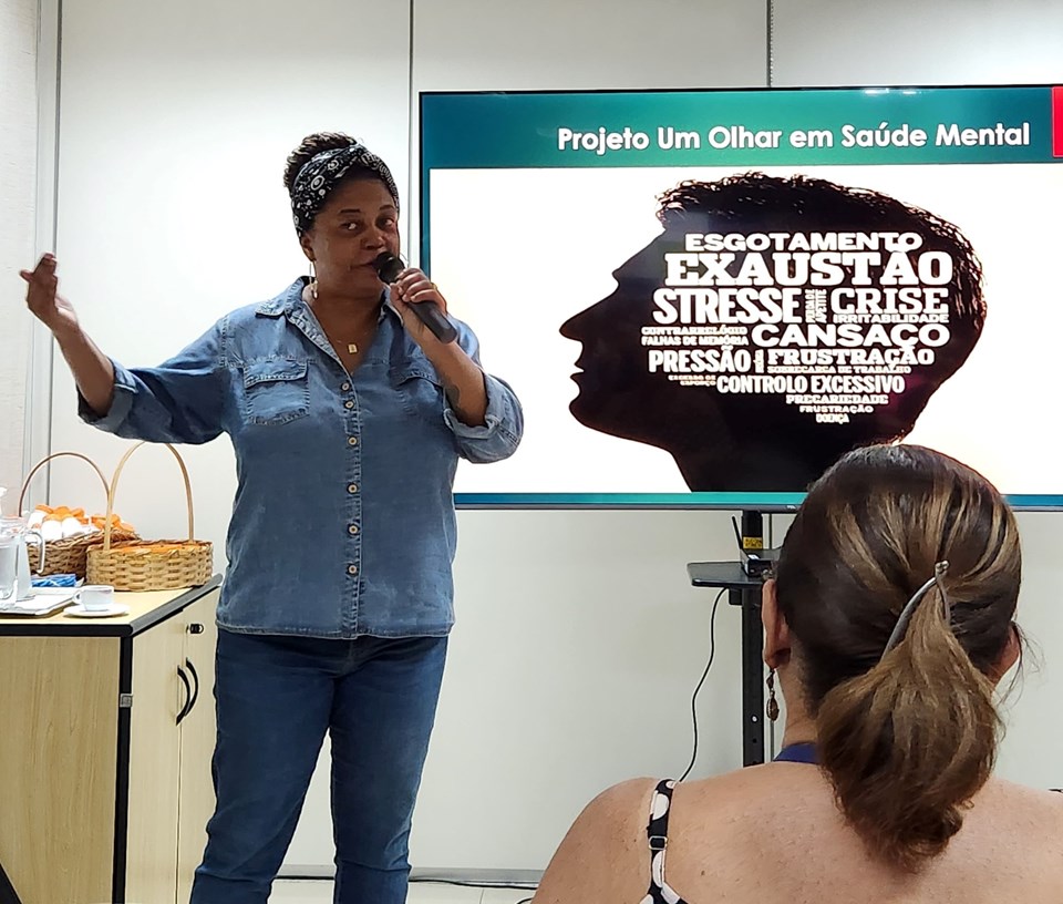 A docente explicou ainda que a saúde mental está diretamente conectada às relações de trabalho. “Se você consegue trabalhar suas relações afetivas, pessoais e no trabalho, você consegue ter saúde mental e caminhar por uma vida saudável. Quando se pensa em saúde mental, se pensa em todos os âmbitos da vida”, completou Luziane Guedes.