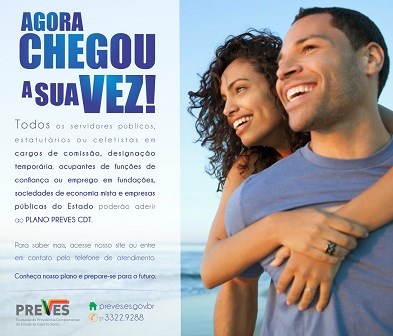 A Fundação de Previdência Complementar do Estado do Espírito Santo (PREVES) disponibiliza um novo plano de previdência complementar voltado para os servidores públicos, estatutários ou celetistas, ocupantes de cargos comissionados, designação temporária, funções de confiança ou que atuam em fundações, sociedades de economia mista e empresas públicas do Estado. Trata-se do Plano PREVES CDT, já aprovado pela Superintendência Nacional de Previdência Complementar (PREVIC).