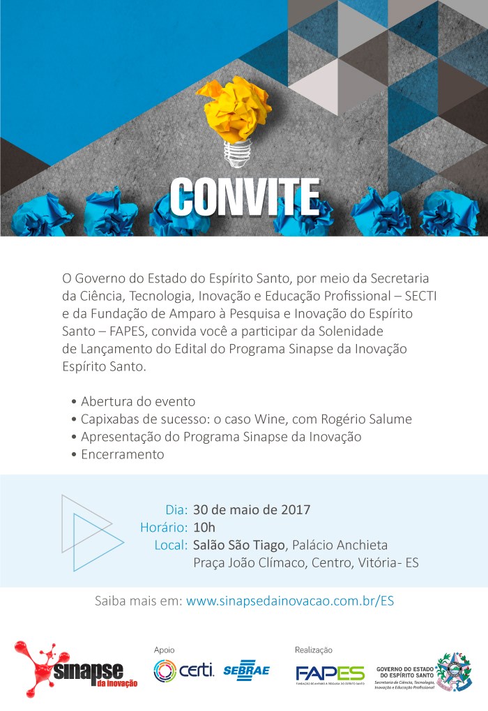 Para diversificar a matriz econômica de um Estado é importante ter iniciativas que estimulem novos negócios e fomentem a cultura do empreendedorismo. Neste sentido, uma das estratégias do Governo do Espírito Santo é a promoção do programa “Sinapse da Inovação”, por meio da Secretaria de Ciência, Tecnologia e Inovação (Secti) e da Fundação de Amparo à Pesquisa e Inovação do Espírito Santo (Fapes), em parceria com a Fundação Certi.