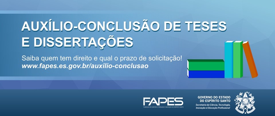 Para receber o Auxílio-Conclusão de Teses e Dissertações, o coordenador do programa de pós-graduação deve solicitar, por meio de formulário específico disponibilizado no site da Fapes (www.fapes.es.gov.br/formularios), com anuência do bolsista e de seu orientador. A solicitação deve ser realizada no prazo mínimo de 20 e máximo de 30 dias antes do fim do último mês de pagamento da bolsa.