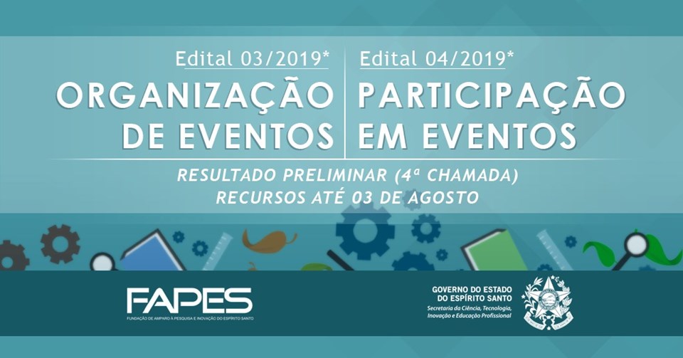 A Fundação de Amparo à Pesquisa e Inovação do Espírito Santo (Fapes) publicou as listas de propostas selecionadas nas chamadas públicas de organização de eventos e também para auxílio à participação em eventos técnico-científicos. O resultado preliminar foi divulgado, nessa segunda-feira (27), e os proponentes podem apresentar recursos até o próximo dia 03 de agosto.