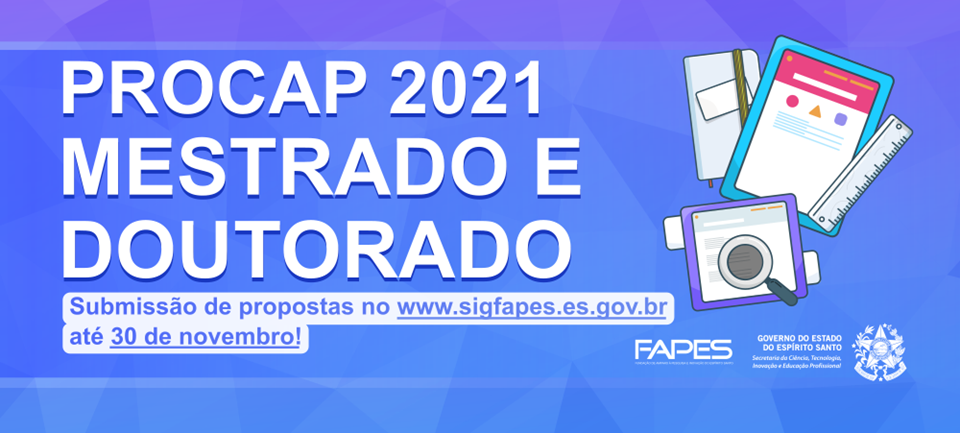 Os coordenadores dos programas vinculados a instituições de pesquisa, faculdades e universidades capixabas devem submeter as propostas ao Procap pela Plataforma SigFapes. Toda a documentação necessária, assim como o procedimento de inscrição, está descrita nos editais nº 10/2020 (doutorado) e nº 11/2020 (mestrado), disponíveis no www.fapes.es.gov.br.