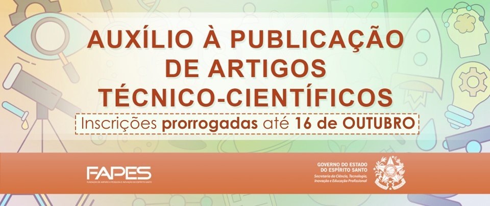 A Fundação de Amparo à Pesquisa e Inovação do Espírito Santo (Fapes) prorrogou o fim do prazo de inscrição do edital de apoio à publicação de artigos científicos em periódicos nacionais e internacionais. O período para cadastrar as propostas termina no dia 16 de outubro.