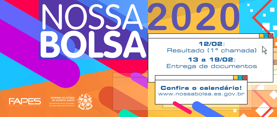 A lista dos selecionados pelo Programa Nossa Bolsa para ingresso em 2020 está disponível no site da Fundação de Amparo à Pesquisa e Inovação do Espírito Santo (Fapes). Nesta quinta-feira (13), começa o período de entrega da documentação dos candidatos presentes na lista divulgada, o que deve ser feito na instituição que oferta o curso escolhido até o dia 19 de fevereiro. A chamada dos suplentes para as vagas que não forem ocupadas nesta primeira etapa será divulgada no dia 21 de fevereiro.