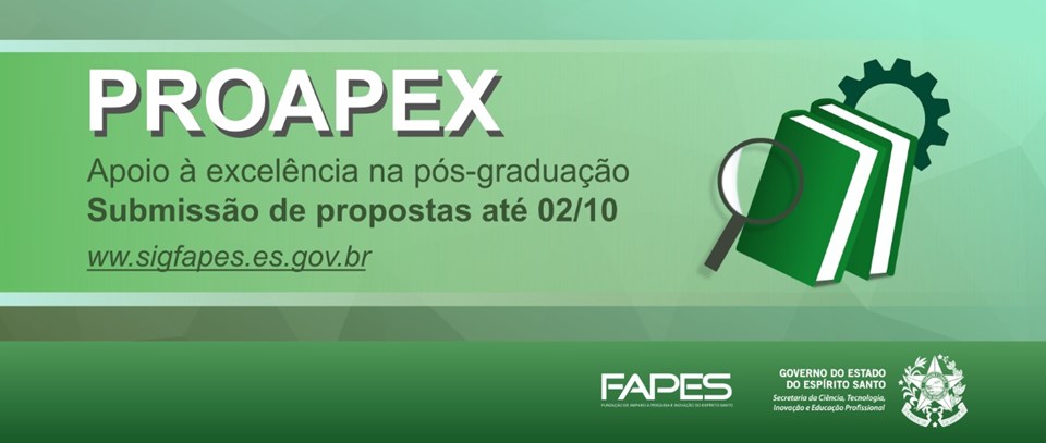 A Fundação de Amparo à Pesquisa e Inovação do Espírito Santo (Fapes) abriu, nesta segunda-feira (31), as inscrições para o Programa de Apoio à Excelência Acadêmica da Pós-Graduação Capixaba (Proapex). O investimento de R$ 7 milhões é voltado aos programas com conceito 5 na avaliação da Coordenação de Aperfeiçoamento de Pessoal de Nível Superior (Capes).