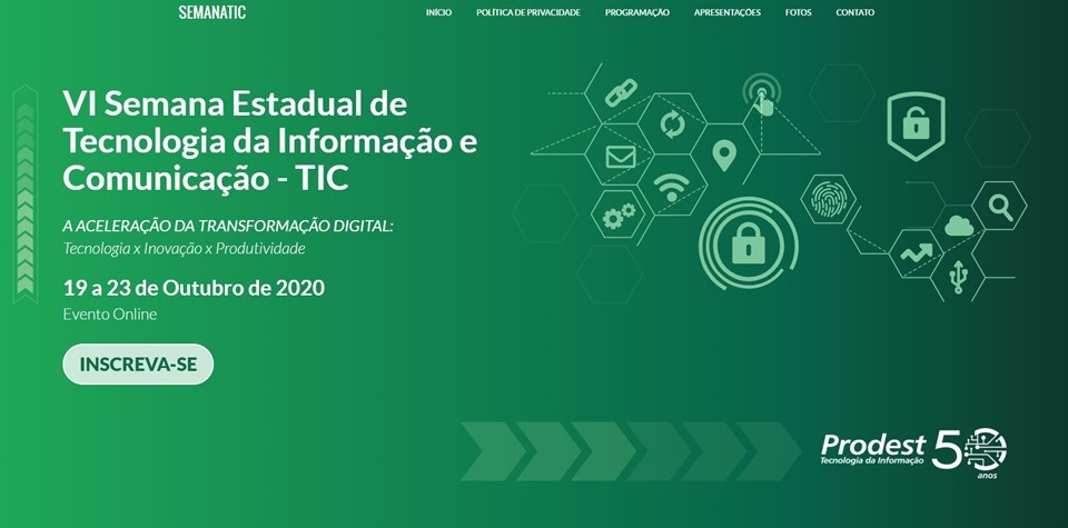 Com a transformação digital se intensificando na rotina de pessoas e empresas, o conhecimento se torna ainda mais importante para superar novos desafios. Pensando nisso, o Instituto de Tecnologia da Informação e Comunicação do Estado do Espirito Santo (Prodest) abriu inscrições gratuitas para a VI Semana Estadual de TIC – Tecnologia da Informação e Comunicação.